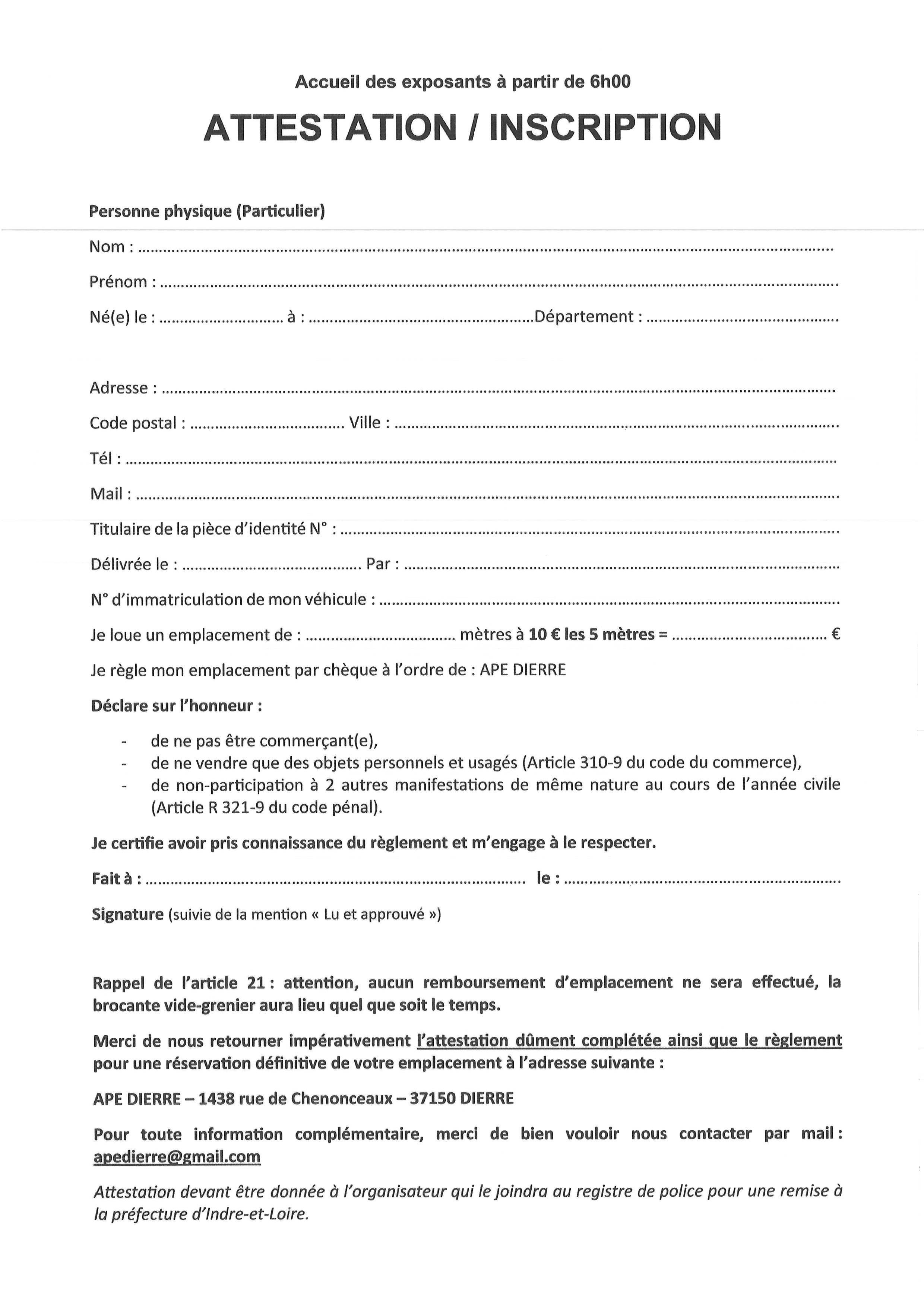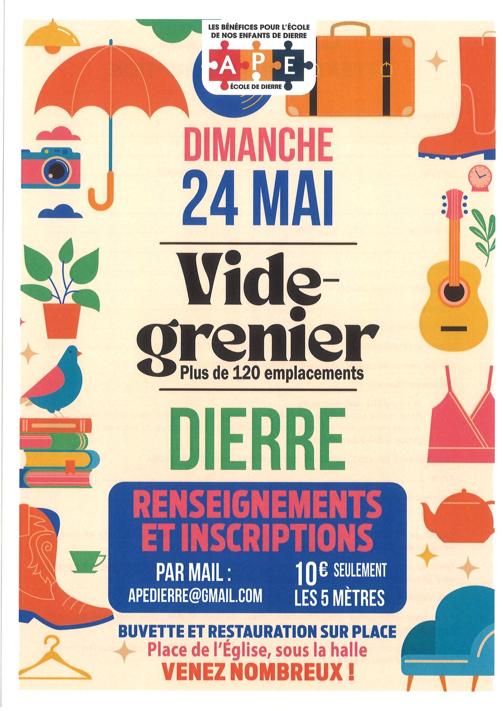 Vide grenier le dimanche 24 mai 2026 place de l'église organisé par l'APE de Dierre